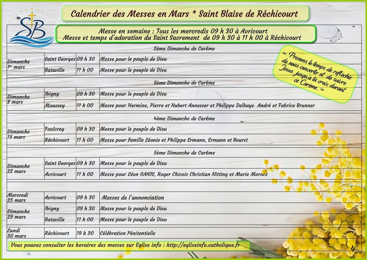 Planning des Messes - Communauté de Paroisses de Réchicourt le Château